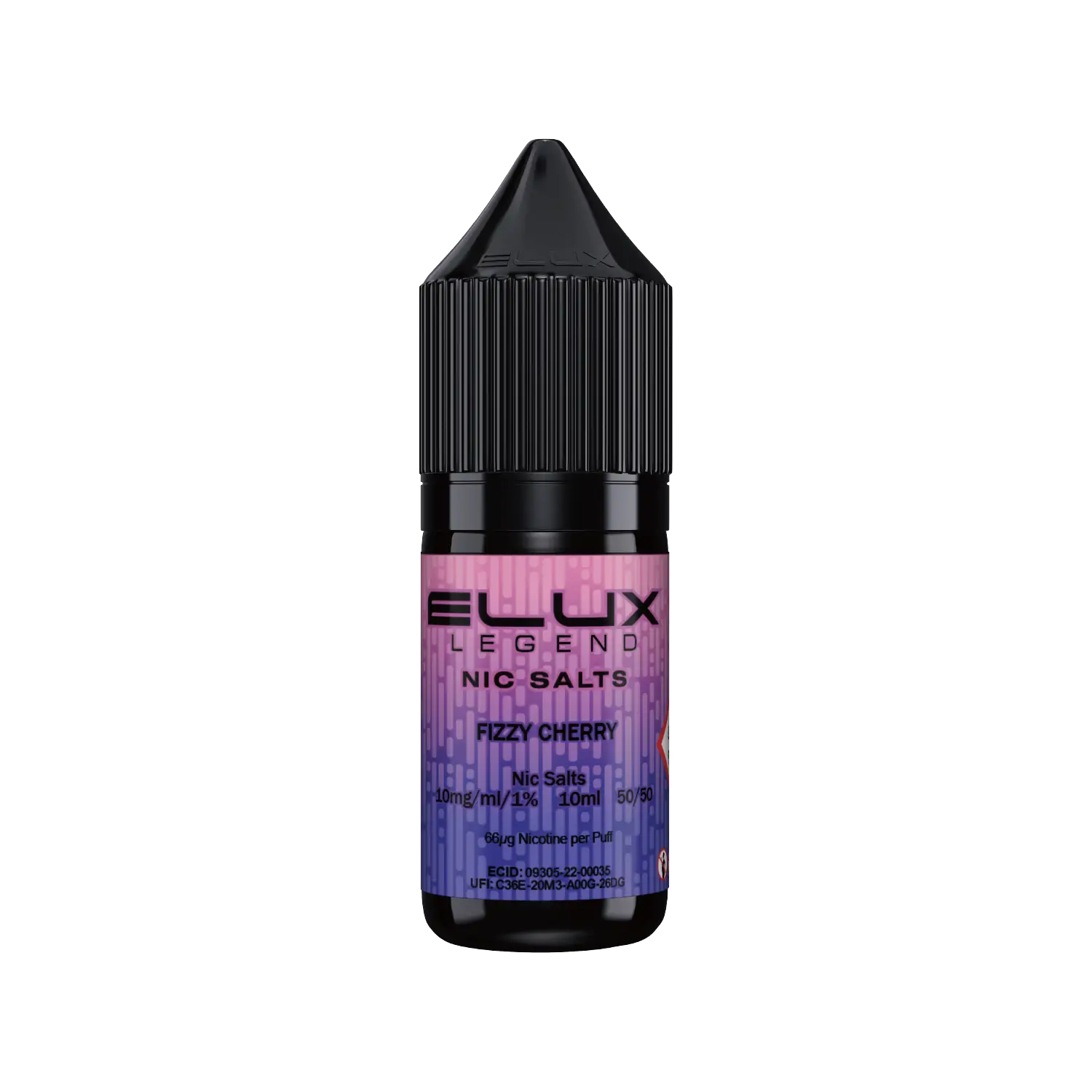 Fizzy Cherry nic salt e-liquid by Elux Salts captures the taste of cherry soda. Sweet notes of juicy-tasting cherry are complemented by a fizzy, tangy exhale.